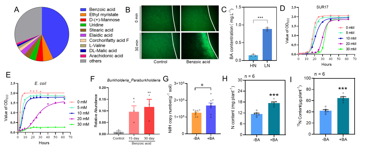 图 2. 苯甲酸参与联合固氮菌招募同时抑制其他细菌