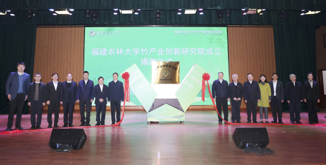 12月28日上午,永利集团88304官网在线登录竹产业创新研究院成立揭牌暨科技合作项目签约仪式在旗山校区报告厅举行。福建省政协副主席严可仕,省农业科学院院长余文权,省科技厅副厅长黄舒,省工信厅副厅长陈传芳,省农业农村厅副厅长郭宋玉,省林业局总工程师张志才,省教育厅二级巡视员黄荣光,省委组织部人才工作处处长陈兆勋,邵武市人民政府市长郭绯红,福建省永安林业(集团)股份有限公司总经理赵家悦,永利官网党委书记赖海榕、校长兰思仁、校党委副书记陈世奎、副校长周顺桂出席会议。揭牌和签约仪式由兰思仁主持。