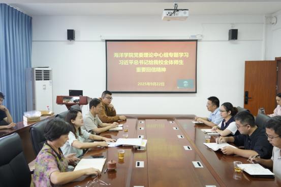 9月22日上午,海洋学院党委在501会议室召开理论学习中心组学习(扩大)会,深入学习习近平总书记给永利集团88304官网在线登录全体师生的重要回信精神,研究部署学院贯彻落实工作。学院党委理论学习中心组成员、科级干部、系主任、党支部书记、学生代表等参加学习会。会议由学院党委副书记(主持工作)郑亚凤主持。