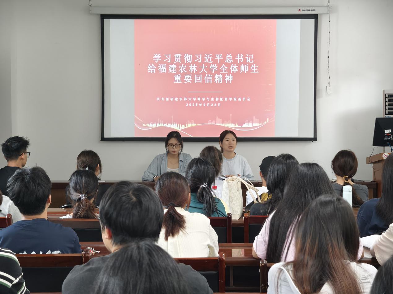 9月22日中午,蜂学与生物医药学院团委组织团学骨干及各班级代表在生药楼102教室开展专题学习会议,传达学习习近平总书记给永利集团88304官网在线登录全体师生的重要回信精神,会议由学院辅导员许惠、林安淇共同主持。