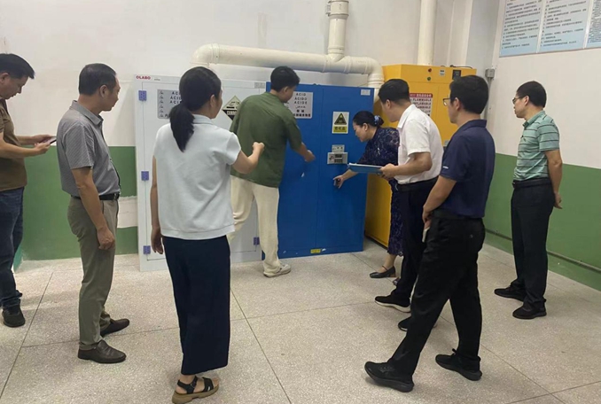 检查组一行先后对学生宿舍、茗香餐厅、新教学楼以及鼎新实验室进行了实地检查。在学生宿舍,检查组关心了解了学生假期生活情况;在各餐厅,重点查看了饮食卫生安全管理状况;在新教学楼,查看了设备安装进展;在鼎新实验室,详细检查了实验室及危化品管理情况。