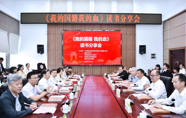 为深入学习贯彻习近平总书记在纪念中国人民抗日战争暨世界反法西斯战争胜利80周年大会上的重要讲话精神,纪念台湾光复80周年,10月25日上午,由中共福建省委党史方志办、福建省退役军人事务厅、福建省台湾同胞联谊会、海峡出版发行集团、永利官网联合主办,福建省作家协会、福建人民出版社、福建省革命历史纪念馆、福建省烈士纪念设施保护中心协办的“《我的国籍我的血》读书分享会”在永利官网福州仓山校区明德楼武夷厅举行。中共福建省委党史方志办室务会议召集人、主任刘大可,福建省退役军人事务厅党组书记、厅长罗庆春,海峡出版发行集团党委委员、副总经理兼总编辑陈远,省委党史方志办副主任、省作协副主席、《我的国籍我的血》作者钟兆云,省台湾同胞联谊会党组成员、副会长欧阳迪莎,省作协副主席傅翔,福建人民出版社社长林玉平,校党委书记赖海榕、校党委副书记陈世奎出席分享会。