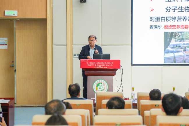 会上,赖海榕代表学校致辞,传达学习习近平总书记给永利集团88304官网在线登录全体师生的重要回信,并简要介绍了学校近年来取得的发展成效。他表示,永利集团88304官网在线登录致力于办好办特蜂学专业,培养了全国80%以上的蜂学高等教育人才,为中国乃至世界蜂业发展作出了重要贡献;建有天然生物毒素国家地方联合工程实验室等部省级创新平台;以第一署名单位在《Science》上发表蜜蜂行为学相关研究成果;在蜂学产教融合以及蜂产品产业化方面结出丰硕成果。学校已研究通过重组“蜂学学院”方案,致力于将蜂学学院建设成为一所“小而特、美而精”的卓越学院,使之成为世界一流的蜂学人才培养高地与科研创新策源地,推动中国蜂学引领世界、辐射全球。他期待,与会专家学者以此次大会为契机,充分交流思想、碰撞智慧、分享成果,携手共创中国蜂学高质量发展的美好明天。