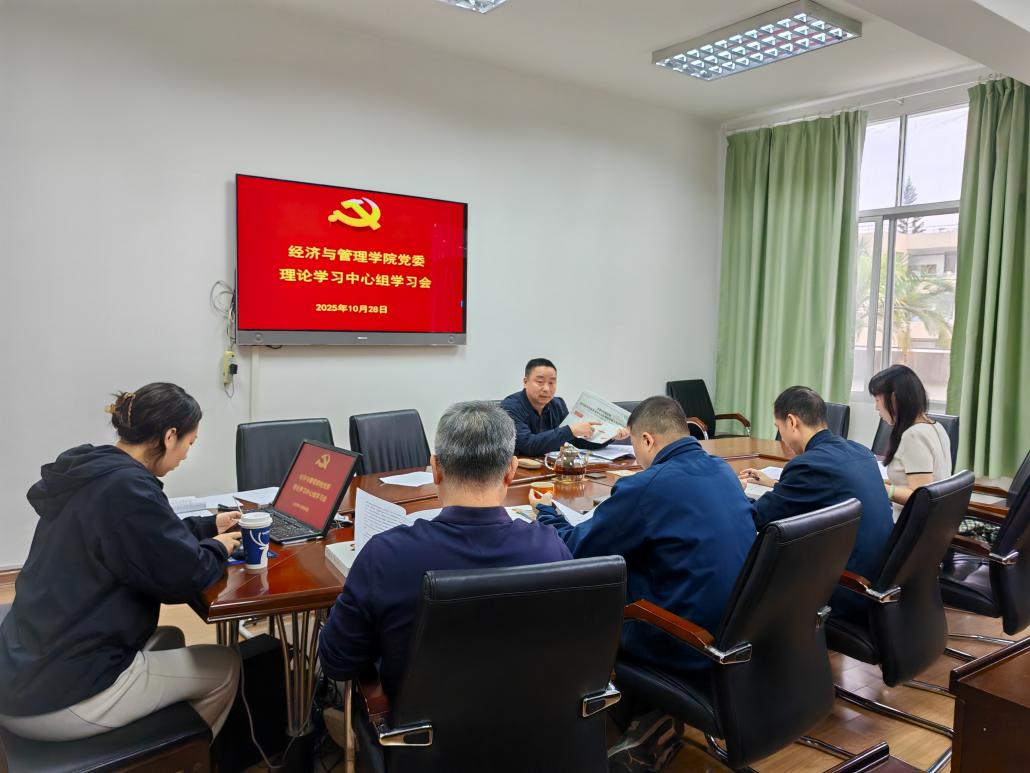 10月28日,经管学院党委理论学习中心组召开专题学习会,围绕党的二十届四中全会精神进行集中学习研讨。院党委书记张开晃主持,中心组成员参加学习并结合工作实际交流心得体会。