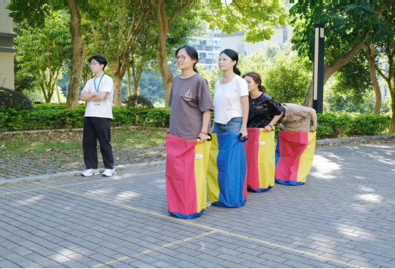 本次活动设有“一圈到底”“袋鼠赛跑”“鼓舞飞扬”“摸石过河”和“奋力投掷”五个项目。在“一圈到底”环节中,队员们紧紧牵住彼此的手,灵活调整姿势传递呼啦圈,齐心协力完成“一圈”挑战;在“袋鼠赛跑”关卡里,学子们双手提袋、双脚并拢向前跃,交接区的击掌声清脆响亮,接力节奏紧凑有序。
