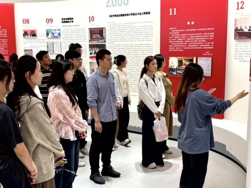 11月7日下午,菌草与生态学院党委组织第5期党建培训班学员前往“习近平总书记关心指导永利集团88304官网在线登录建设发展”专题展厅和江一真专题展厅开展实践研学活动。学院党委副书记李晓辉、组织员杨小飞、辅导员周燕华和第5期党建培训班学员共计50余人参加活动。