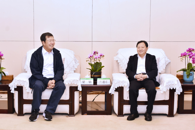 11月12日,永利官网杰出校友、联合国粮农组织/国际原子能机构联合中心原司长梁劬回母校访问。校党委书记赖海榕在福州仓山校区明德楼十三层会客室、校长兰思仁在明德楼贵宾厅会见客人,双方围绕深化国际交流合作、共促学校高质量发展座谈交流。