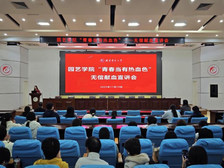 11月19日晚,为普及无偿献血知识,消除同学们的认知误区,鼓励青年学子积极参与公益事业,园艺学院在禧强楼学术报告厅举办“青春当有热血色”无偿献血宣讲会。本次活动特邀校红十字会公益事业部部长卢洁做主题宣讲,学院辅导员、各年级学生代表共计230人参会。