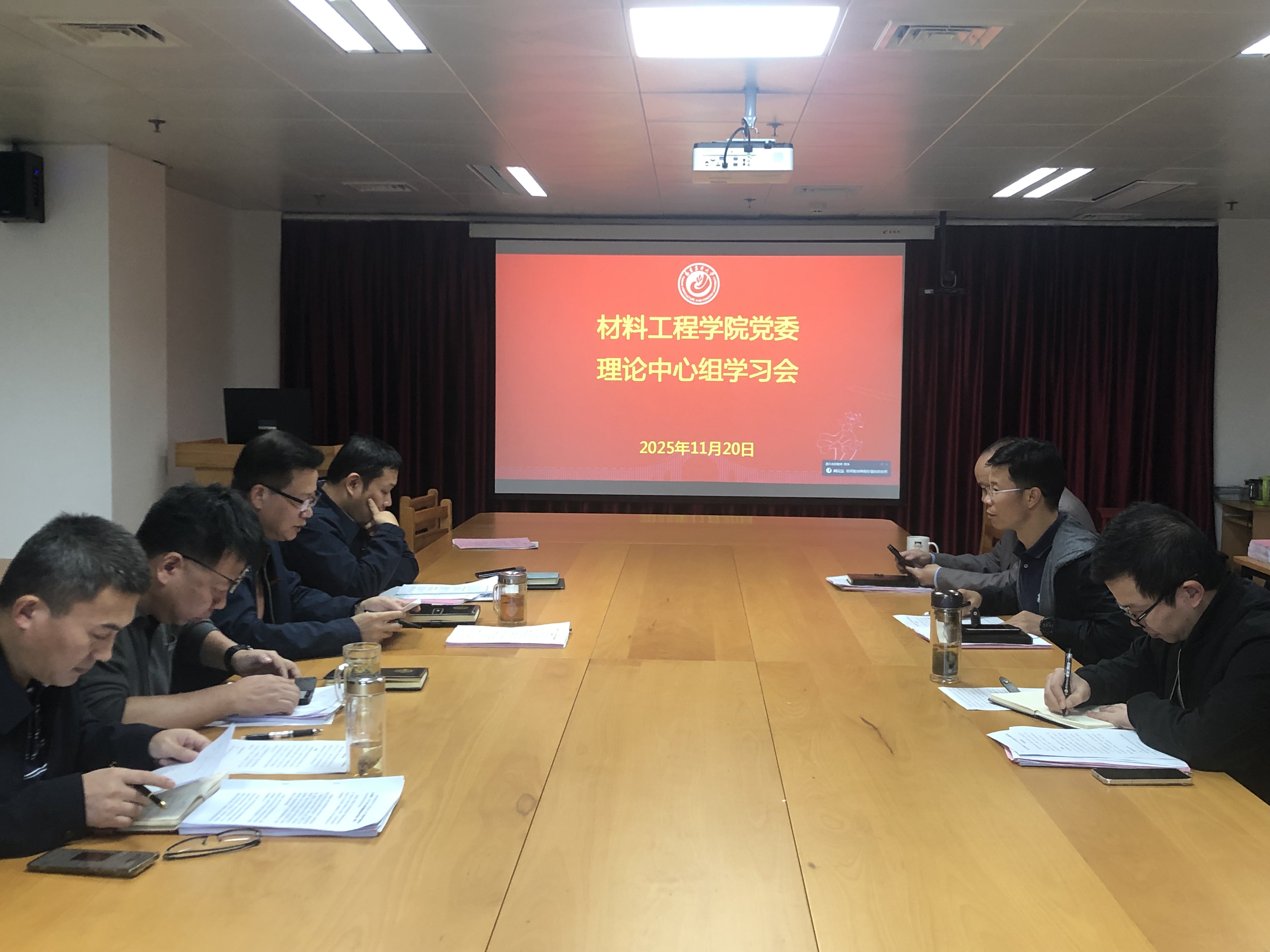 11月20日,材料工程学院党委理论学习中心组在大学城校区仁德楼423会议室召开学习会,深入学习党的二十届四中全会精神,结合《中共中央关于制定国民经济和社会发展第十五个五年规划的建议》开展专题研讨交流。会议由院党委书记林豪森主持,院党委理论学习中心组成员参加了学习交流会。