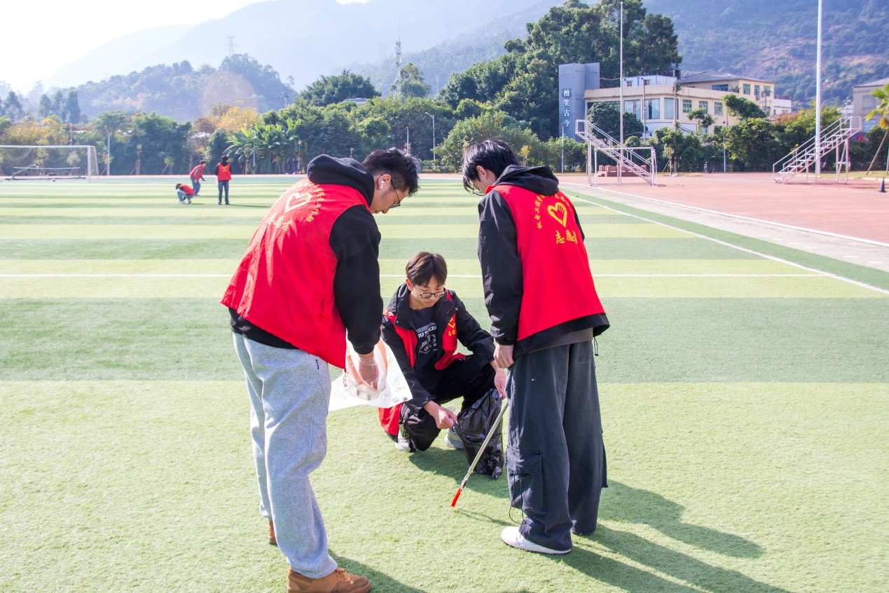 宣誓活动结束后,志愿者们分组前往校园各处,按照既定分工展开细致的清洁工作。他们手持工具,对校园内的纸屑、烟头和杂物进行全面清理,对积存的垃圾进行集中收集与转运。清扫结束后,校园环境焕然一新。