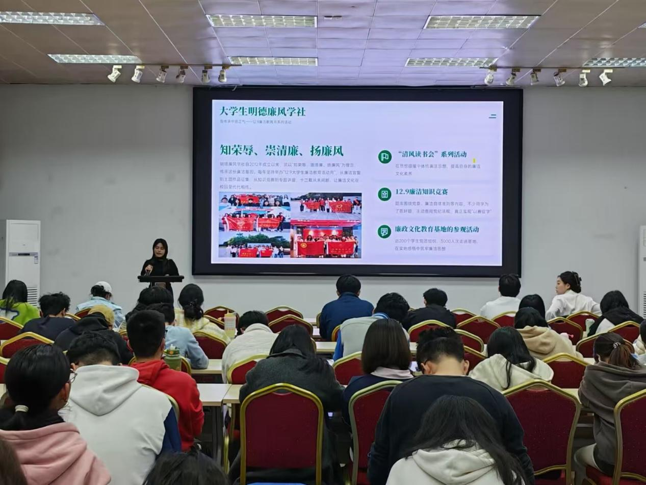 清风拂校园,廉韵润初心。为深挖校史中的廉洁底蕴,引导青年学子筑牢廉洁思想根基,近日,由公共管理与法学院指导,大学生明德廉风学社联合行政管理专业本科生党支部共同举办的“校史中的廉洁方,青春里的守廉方”主题廉洁宣讲会在百悟讲堂结束。公共管理与法学院学生代表及100余名同学齐聚一堂,共学廉洁知识、共悟廉洁真谛,活动成效显著,收获阵阵好评。