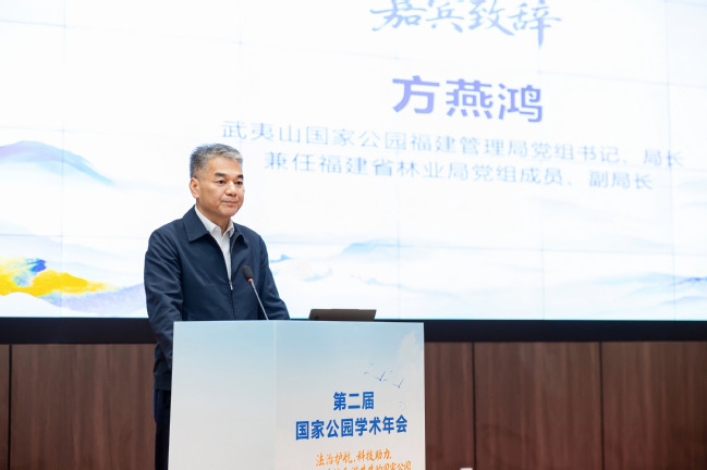 方燕鸿在致辞中谈到,建立国家公园为主体的自然保护地体系是践行习近平生态文明思想的关键举措,并指出法治保障与科技创新在武夷山国家公园生态保护中的重要性和重大作用。