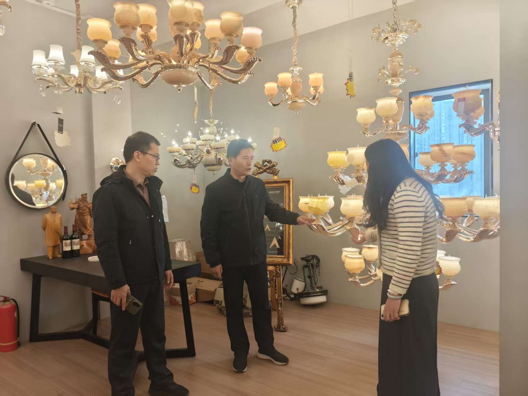 12月27日,安溪茶学院(数字经济学院)党委书记黄成茂,副院长吴义炳深入福建安溪鑫扬五交灯饰有限公司开展访企拓岗促就业活动,公司总经理谢雪芬,副总经理谢雪京,灯光设计师林伟强等陪同。