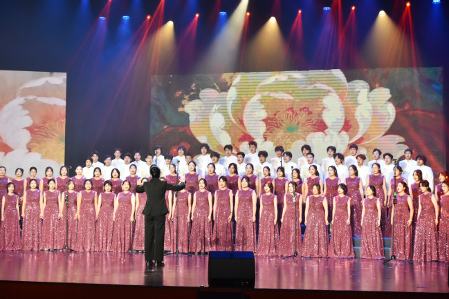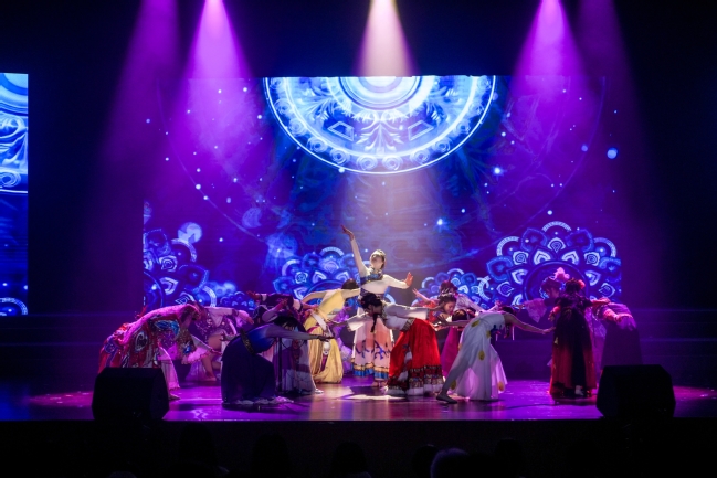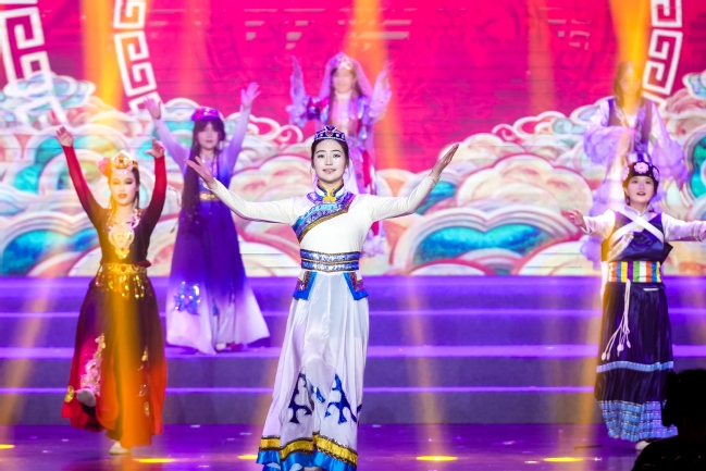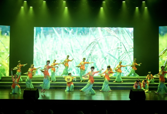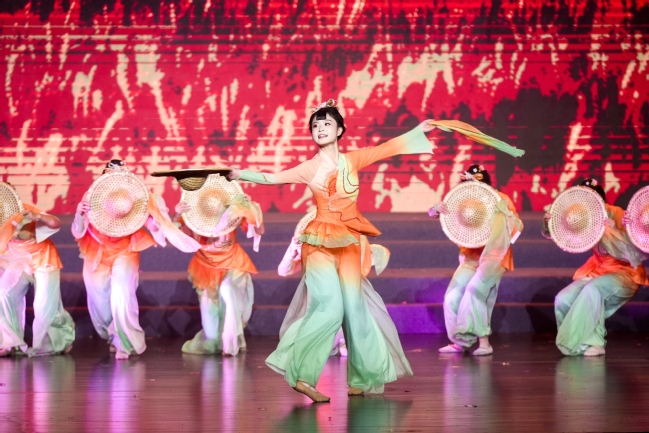 公共管理与法学院艺术团带来的舞蹈《锦绣中华 舞韵同心》,各具特色的民族服饰及歌舞表演,展示了中华文化的绚丽多姿,传递了各民族及两岸同胞同心共筑中华民族伟大复兴梦的美好愿景。