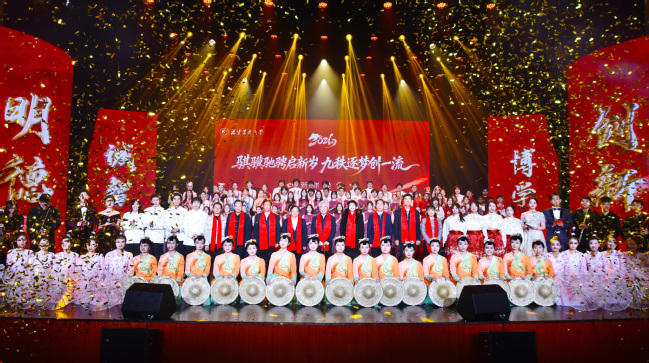新年晚会以“骐骥驰骋启新岁 九秩逐梦创一流”为主题,展现了师生踔厉奋发、锐意进取的精神面貌。由校大学生民乐团带来的开场民乐合奏《赛马》《龙腾虎跃》,旋律激昂澎湃、振奋人心,展现万马奔腾、龙虎争跃的热烈场景,寓意福农人开拓进取的闯劲与厚积薄发的力量,瞬间点燃全场热情。