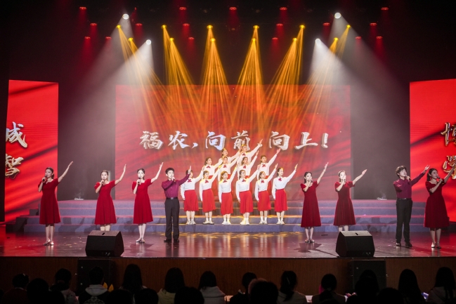 经济与管理学院艺术团带来的朗诵《福农,向前!向上!》,字句铿锵、声情并茂地回顾了福农人勇担强农兴农使命、推进乡村振兴、建设农业强国的生动实践,勉励师生牢记嘱托、自强创新、共创一流。