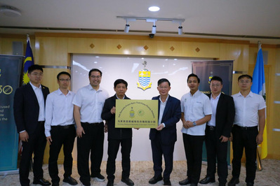 1月30日下午,林文雄教授一行与马来西亚槟城州政府召开座谈会,马来西亚槟城州首长曹观友和槟城州农业技术、粮食安全及合作社发展委员会主席法米再诺等出席。会上,林文雄教授介绍了再生稻技术在增产增效、资源节约与生态减排等方面的显著表现,表示马来西亚气候条件优越,具有推广再生稻技术的良好基础,团队愿积极响应马方技术需求,共享再生稻科技成果。曹观友首长详细了解了再生稻绿色高产高效栽培技术体系的创新要点以及在中国推广的情况。双方还围绕品种本土化审定、示范基地建设等合作细节进行了深入交流。随后,在与会人员的共同见证下,马来西亚槟城州首长曹观友为科技小院授牌。