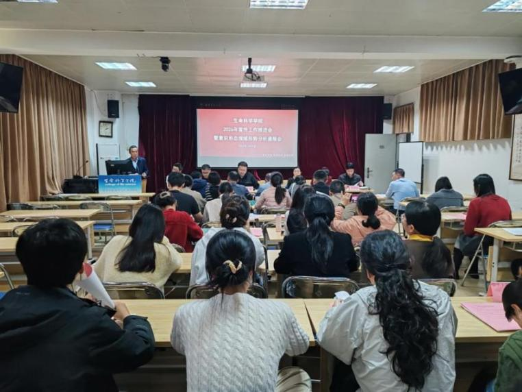 3月25日下午,生命科学学院召开2026年宣传思想工作推进会,研究部署26年学院宣传思想工作。学院党委书记余顺兴、院长秦源及学院领导班子成员、科级干部、教工党支部书记、系主任、辅导员、学生党支部书记代表、学生主席团主要学生干部代表参加会议,会议由学院党委副书记刘强主持。