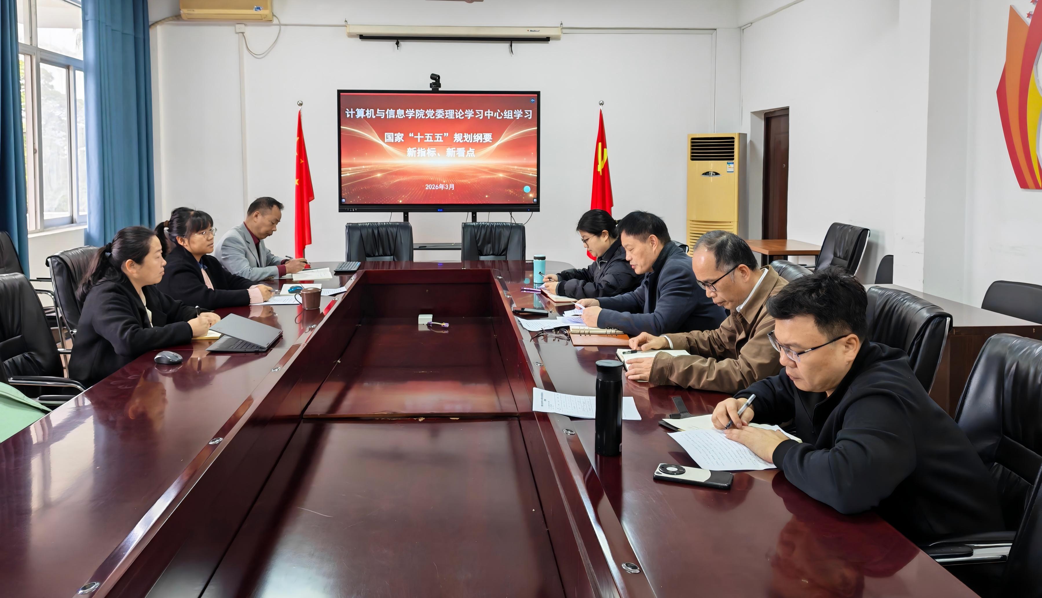 3月26日上午,计算机与信息学院党委召开理论学习中心组学习会,专题学习贯彻习近平总书记在全国两会期间重要讲话精神,深入解读政府工作报告、“十五五”规划纲要等两会核心内容,紧密结合学院学科特色与发展实际,研究部署贯彻落实举措。学院党委理论学习中心组成员参加会议,会议由学院党委书记曾起郁主持。