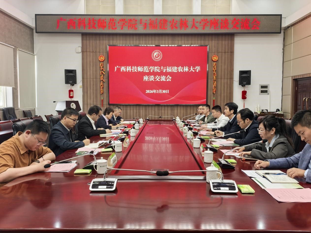 3月30日上午,广西科技师范学院副校长吴建生一行来校考察交流,副校长林庆藩出席座谈会。
