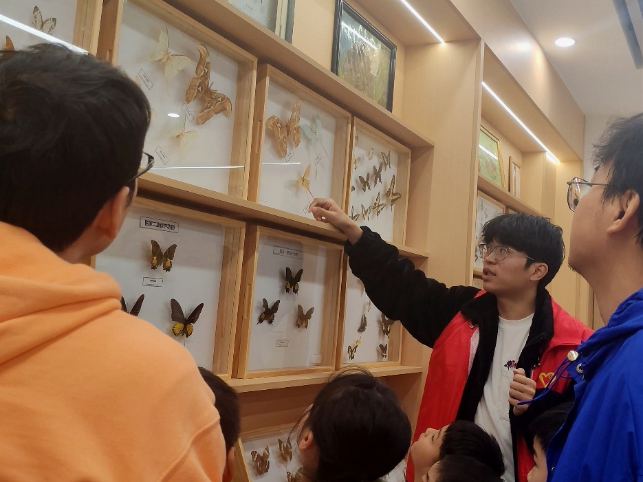 科普的触角也在周末延伸至博学楼四楼的昆虫标本馆(高校星火馆)。学院志愿者化身讲解员,向来校参观的亲子家庭娓娓道来标本背后的故事。孩子们不仅参观了琳琅满目的昆虫标本,还在指导下使用体视镜观察昆虫的微观结构,亲手体验植物拓染与昆虫折纸。“我认识了好多昆虫,也做了个很好看的蝴蝶折纸!”稚嫩的话语里,是探索自然的欣喜。这场与昆虫世界的“零距离”接触,在孩子们心中悄然点燃了科学探究的热情。