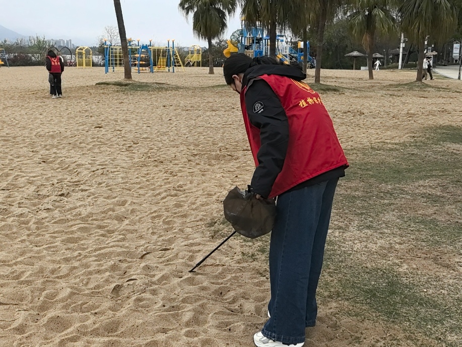 志愿服务的身影同样活跃在校园内外的环境美化中。2025级植物保护2班团支部组织校园环境清洁活动,同学们手持工具,穿梭于各个角落,用汗水守护美丽家园。一位志愿者在活动中感慨地说:“以前在家里很少参加劳动,今天的志愿活动我看到环境因为自己的打扫变得整洁,我内心充满了成就感。”学院青年志愿者协会还将足迹延伸至沙滩公园,志愿者们身着统一服装,将散落的垃圾打扫进垃圾桶。此外,学院志愿者们积极参与“一站式”学生社区青果助力站的打扫与物资室整理,擦拭桌椅、清扫地面、分类归置学习物资,让服务同学的园地更加整洁、干净。