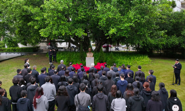 校领导及师生代表拜谒六位先贤铜像