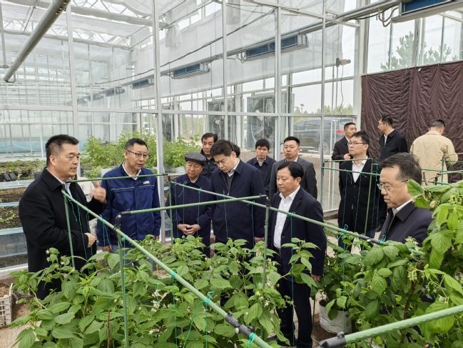 调研神木市毛乌素沙地治沙造林基地大棚种植