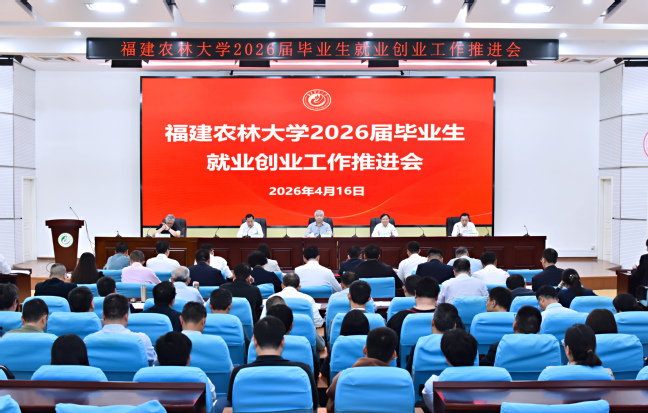 4月16日下午,永利官网在福州仓山校区禧强楼学术报告厅召开2026届毕业生就业创业工作推进会。校党委书记赖海榕,校长兰思仁,校党委副书记曾华平,副校长郑宝东、唐振鹏出席会议。会议由曾华平主持。