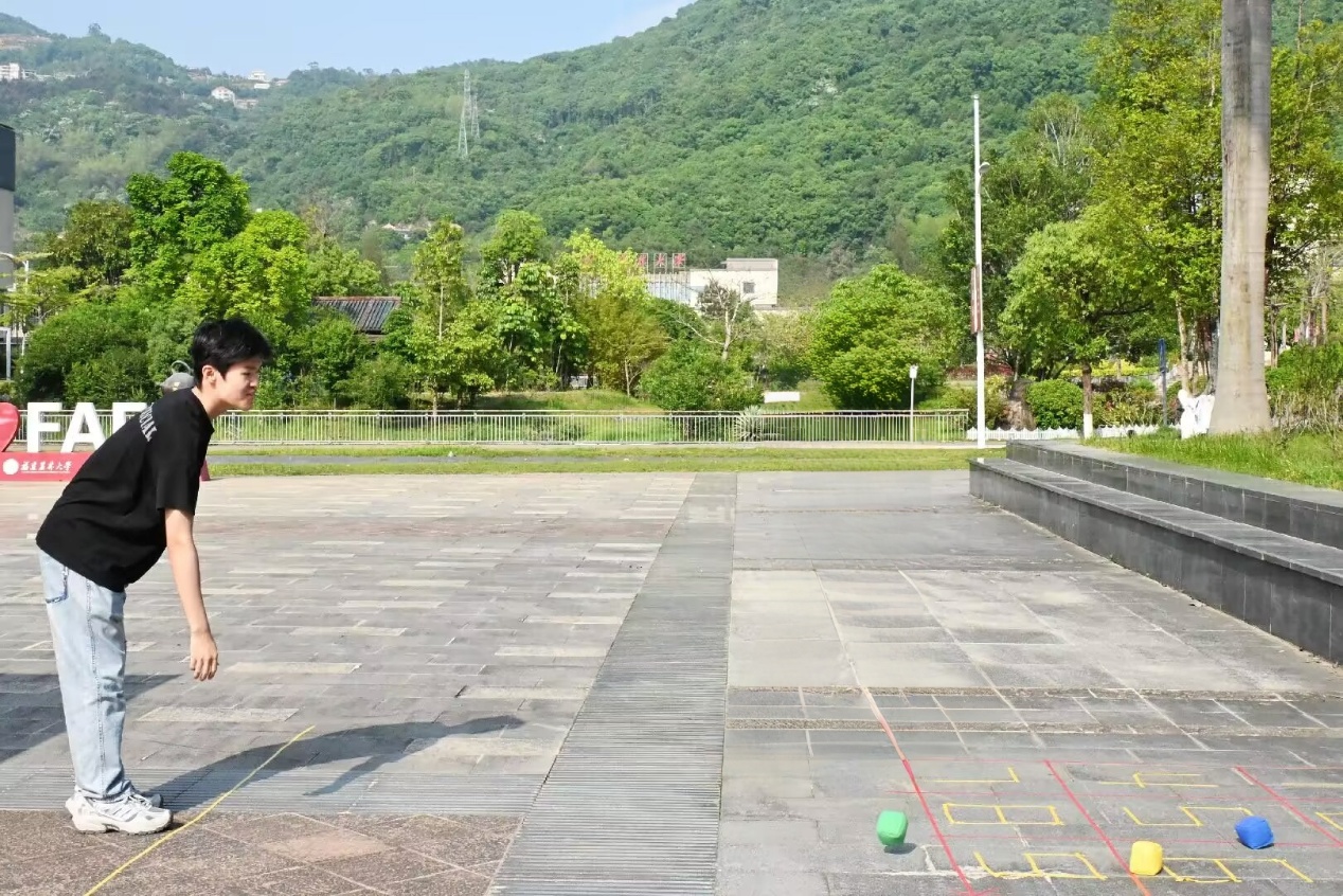 趣味运动会现场气氛热烈,活动设置“飞盘九宫格”“运输乒乓球”“平板支撑”“投壶挑战”四大闯关项目。在“飞盘九宫格”环节中,同学们屏息凝视,将飞盘精准投掷到对应格内;“运输乒乓球”项目要求参与者用筷子运球,考验同学们的专注力与平衡感,他们小心迈步,轻巧地把乒乓球送至终点;在“平板支撑”关卡中,同学们咬紧牙关,坚持不懈,稳稳支撑住自己的身形;在“投壶挑战”中,同学们专注沉稳,一支支飞箭精准命中,在游戏中体验别样乐趣。大家全力以赴,在欢声笑语中一路打卡,顺利通关,享受运动的乐趣,收获满满的成就感。