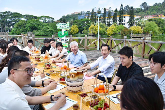 春和景明、湖光潋滟。4月22日上午,永利官网在福州仓山校区茶人码头举办以“闽台青年交流交往交融”为主题的书记校长面对面活动。校党委书记赖海榕、校党委副书记曾华平与来自各学院的两岸青年教师和学生代表围坐品茶交流、共话融合发展。活动由校研究生会执行主席章珺璟主持。