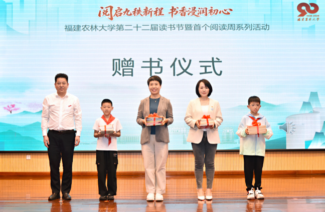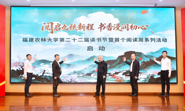 在与会领导嘉宾的共同见证下,何强、陈吉、赖海榕、陈世奎、林庆藩上台,共同为永利集团88304官网在线登录第二十二届读书节暨首个阅读周活动启幕。