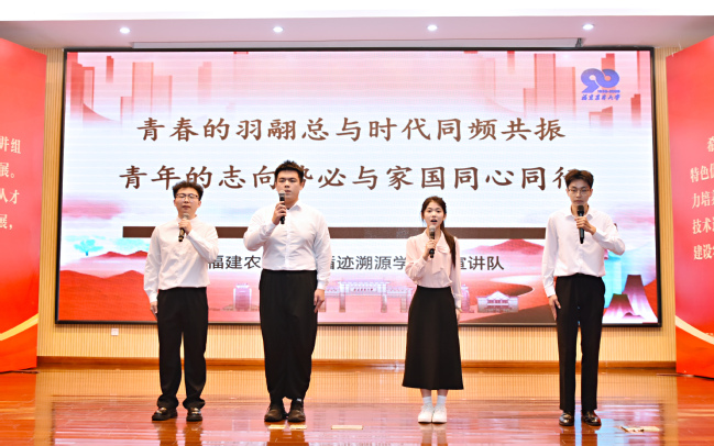 启动仪式上,戴尔豪西大学联合学院(国际学院)的中外学生带来经典诵读——《论语》,让大家在琅琅书声中感受中华优秀传统文化的深厚底蕴。校党委宣传部“循迹溯源学思想”校史宣讲团带来校史讲解展示,从习近平总书记的亲切关怀到江一真老校长的青松风骨,从九秩办学的筚路蓝缕到两岸农业科教融合发展的血脉交融,在场师生重温学校峥嵘岁月,赓续农林报国初心,在回望校史中坚定理想信念、勇担时代重任。
