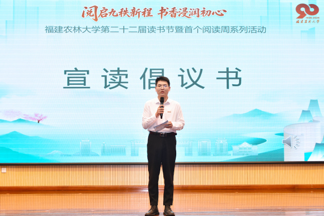最是书香能致远,4月24日上午,以“阅启九秩新程,书香浸润初心”为主题的永利集团88304官网在线登录第二十二届读书节暨首个全民阅读周活动启动仪式在福州仓山校区常盛会议中心举行。福建省政府参事、福建省全民阅读促进会会长何强,中国非物质文化遗产保护协会副会长、福建省文旅厅原副厅长陈吉,校党委书记赖海榕、校党委副书记陈世奎、副校长林庆藩出席开幕式,与全校师生共赴书香之约,落实《全民阅读促进条例》。开幕式由乡村振兴学院农村区域发展专业本科生项陈皓主持。